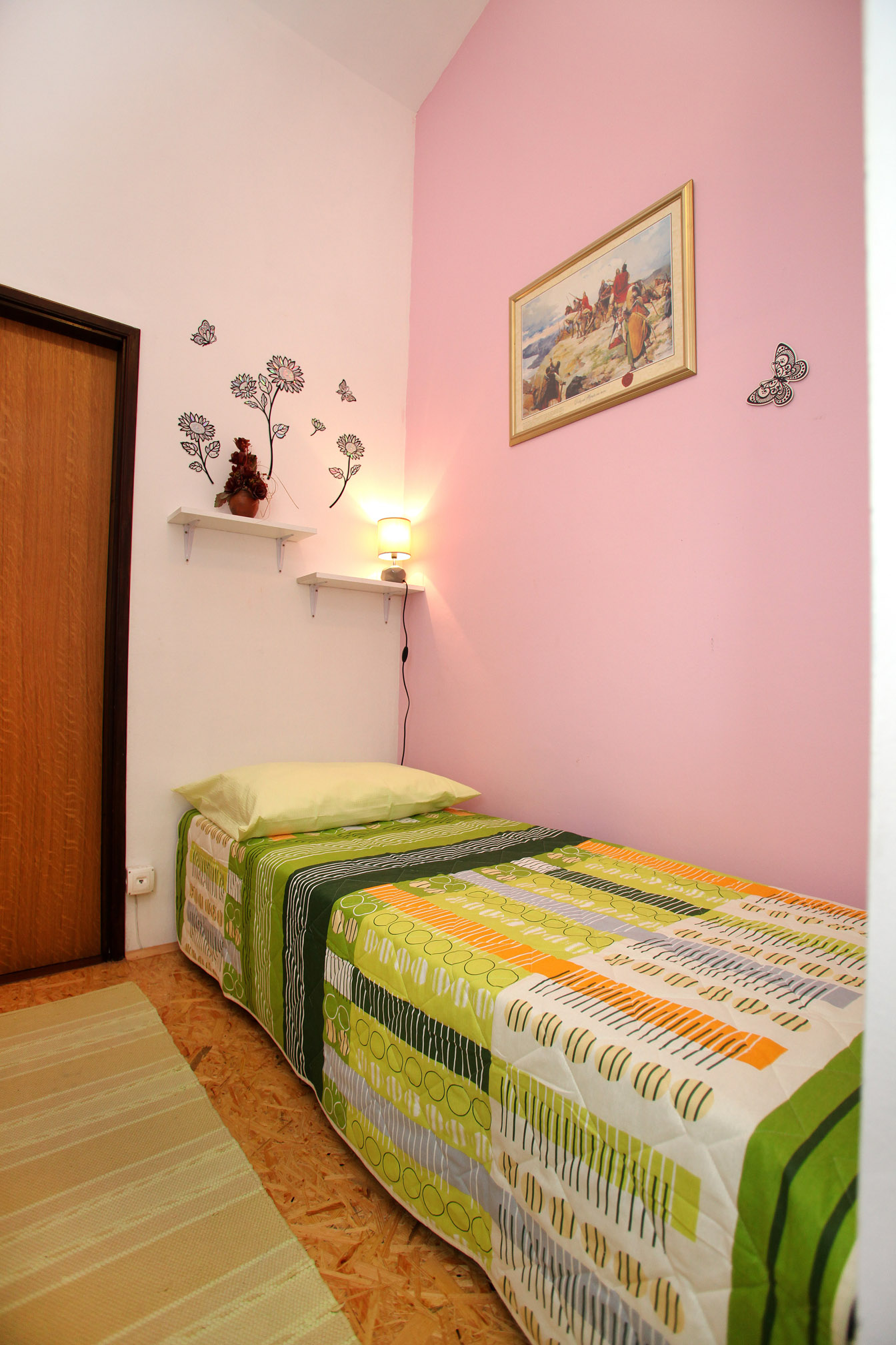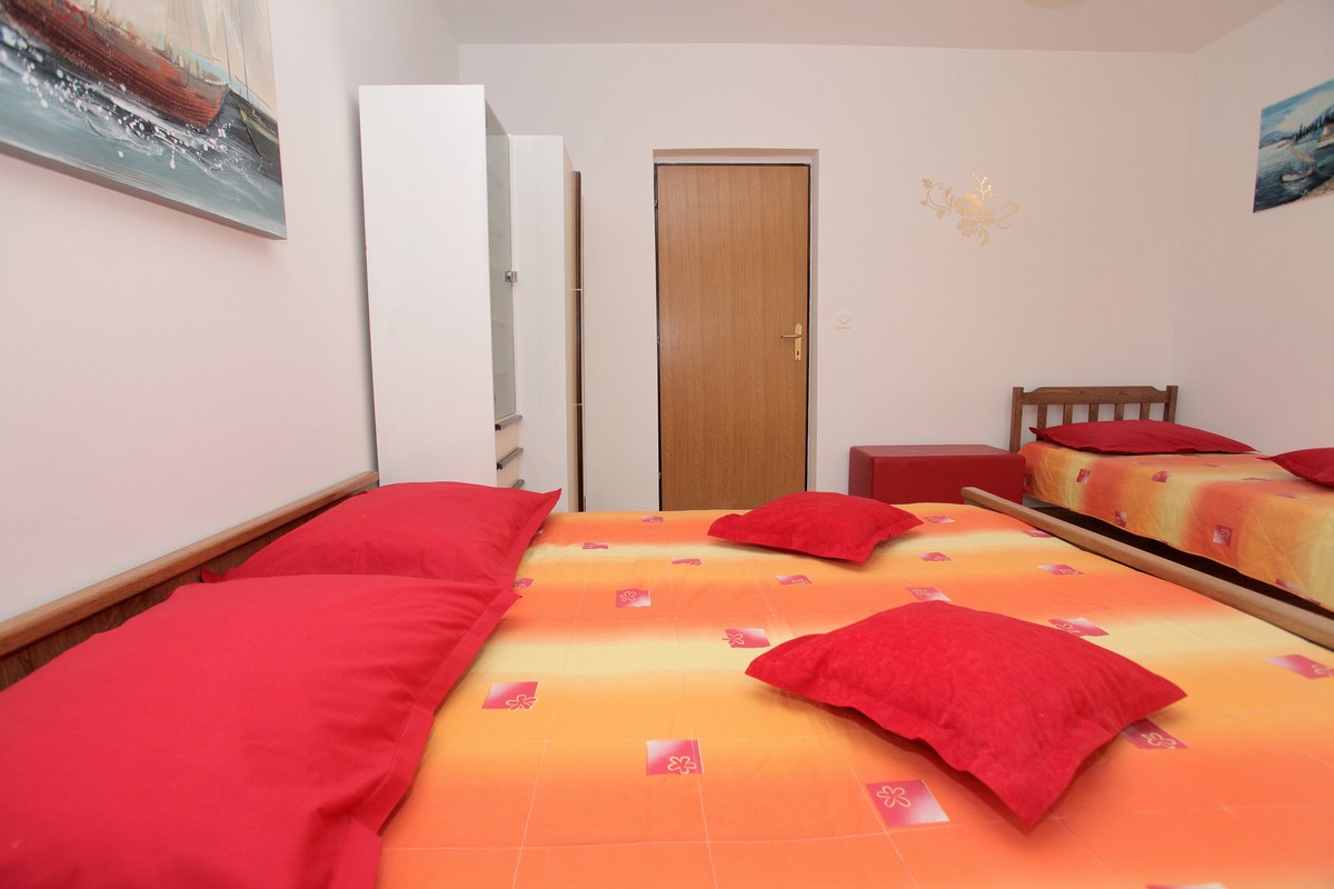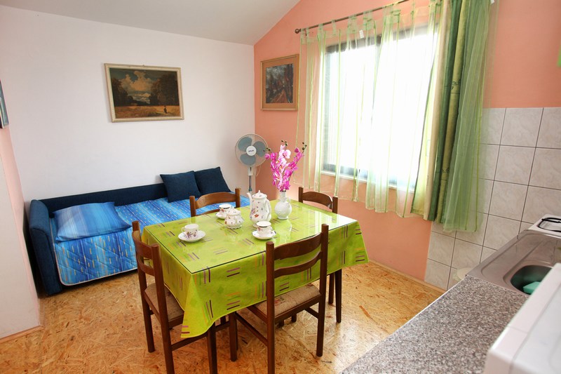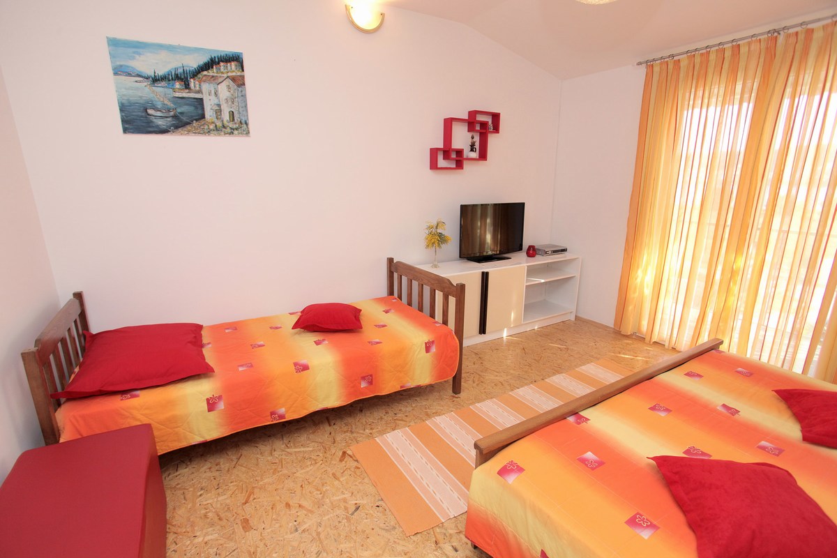 Klimatizirani apartman, nalazi se na prvome katu i ima jednu sobu sa tri kreveta, kuhinju sa dnevnim boravkom sa kaučem na rasklapanje za dvije osobe, kupatilo sa tuš kabinom, SAT/TV.